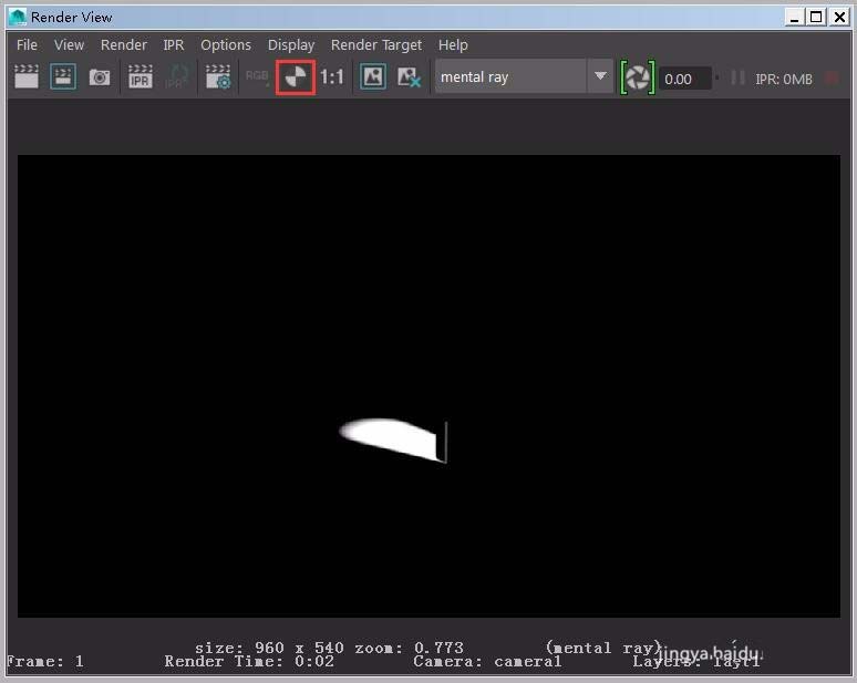 6、將渲染器切換成mental ray,點擊渲染,可以通過alpha查看陰影效果