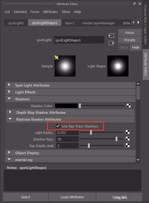 2、選中需要產生陰影的燈光,在屬性編輯里的shadow勾選use ray trace shadows