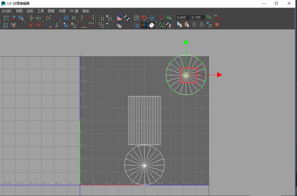 5、左擊點住方向手柄中心點(下圖紅框處)即可拖動uv實現分離。