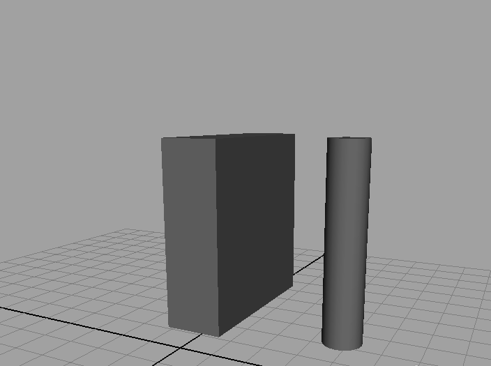 1、打開maya軟件,新建一個立方體,一個圓柱體,開始演示,我這里就是以這個為例了,第一步很簡單,不再多說,初級者也都會的