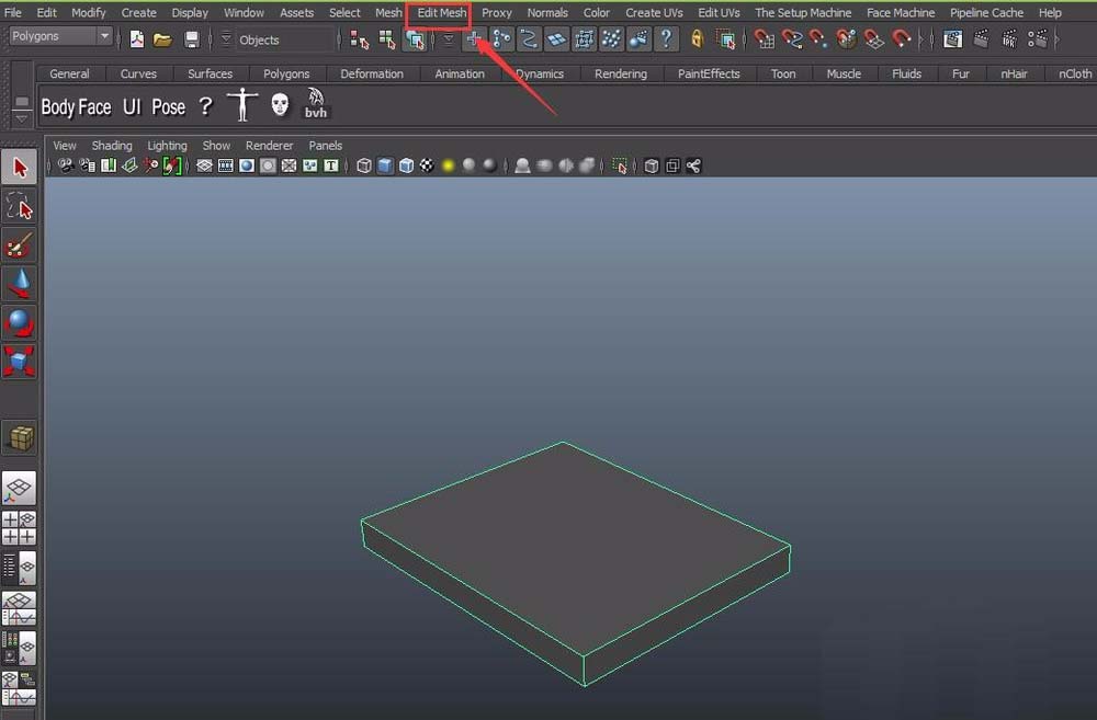6、按下鍵盤上的數字5,進入實體顯示,然后在上面的菜單里找到edit mesh菜單,如圖所示: