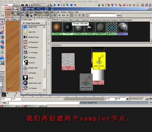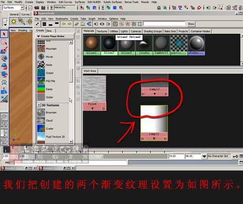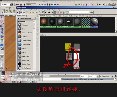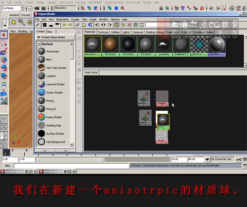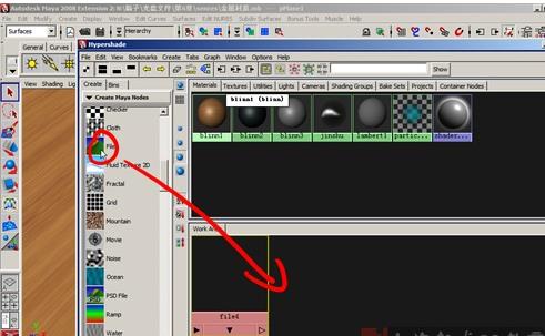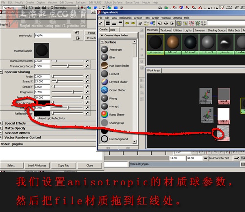 我們設(shè)置anisotrpic的材質(zhì)球參數(shù),然后把file材質(zhì)拖到紅線處。