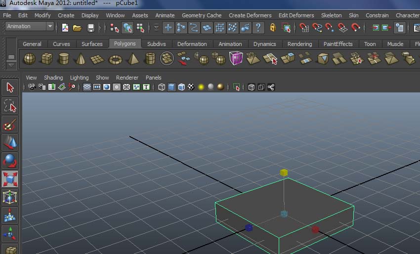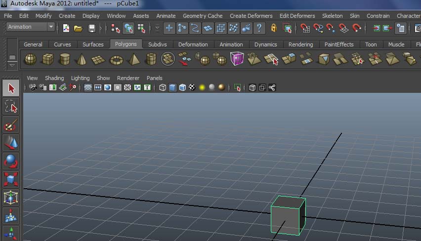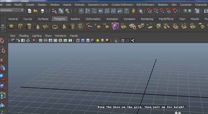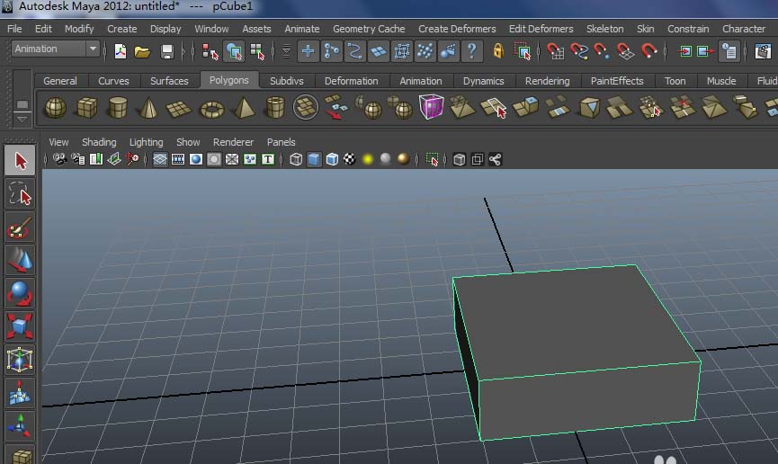 1、打開maya軟件,選擇polygons下的cube,在網格上可拉出立方體模型。