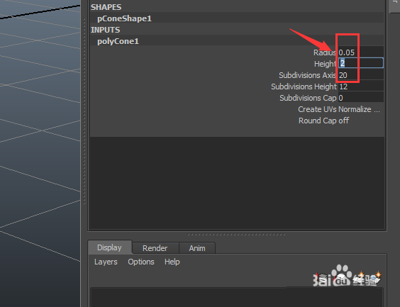 7、點擊cone選項在視圖里創建一個圓錐體,并設置其參數如圖所示: