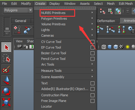 2、在該界面內找到create菜單里的nubrs primitives選項,如圖所示: