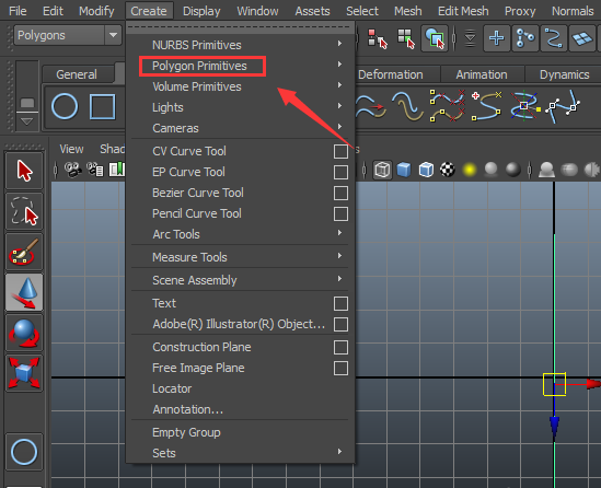 5、再在create選項內找到polygon primitives選項,如圖所示: