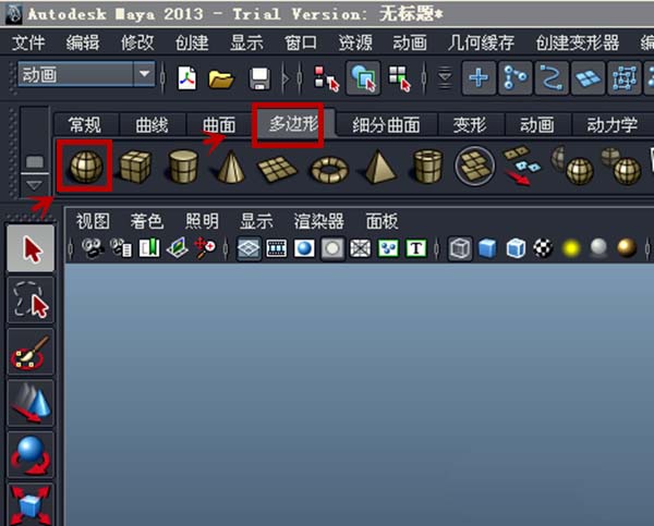 2、在Autodesk Maya 2013軟件中單擊多邊形,在多邊形中點(diǎn)擊【球體】
