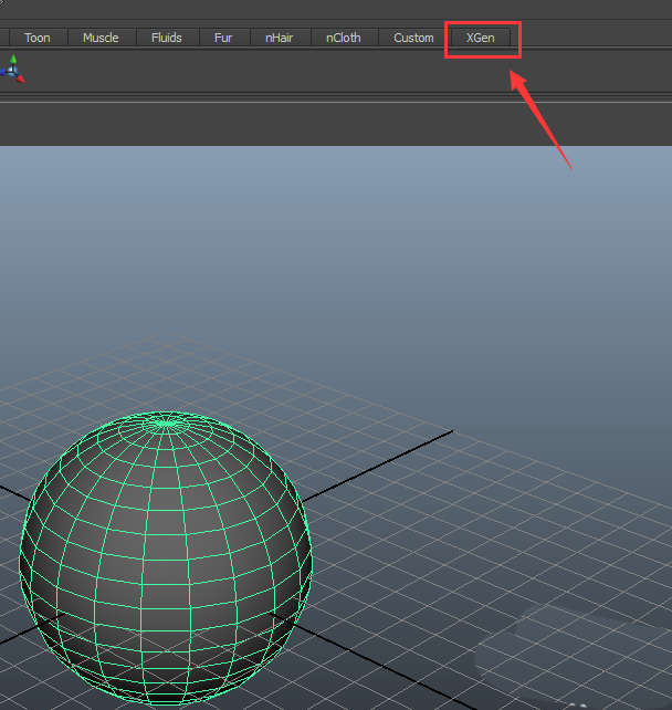 4、點擊sphere選項,在透視圖里創建一個球體并在菜單里找到xgen選項,如圖所示:
