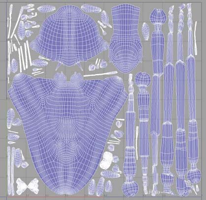 對于重新拓撲,可以結合使用ZBrush的ZRemesher系統和TopoGun的重新拓撲工具。針對有機的UV展開,ZBrush的UV Master適合于任何形狀,在需要的地方放置UV接縫的一個好方法是使用多邊形分組來創建UV islands。或者,使用Control Painting來保護UV接縫。