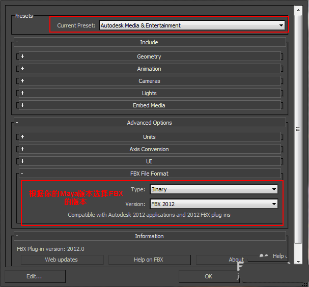 2、選擇上圖中所有的幾何體,然后直接導出FBX,見下圖。