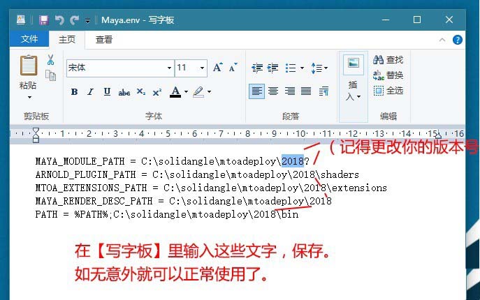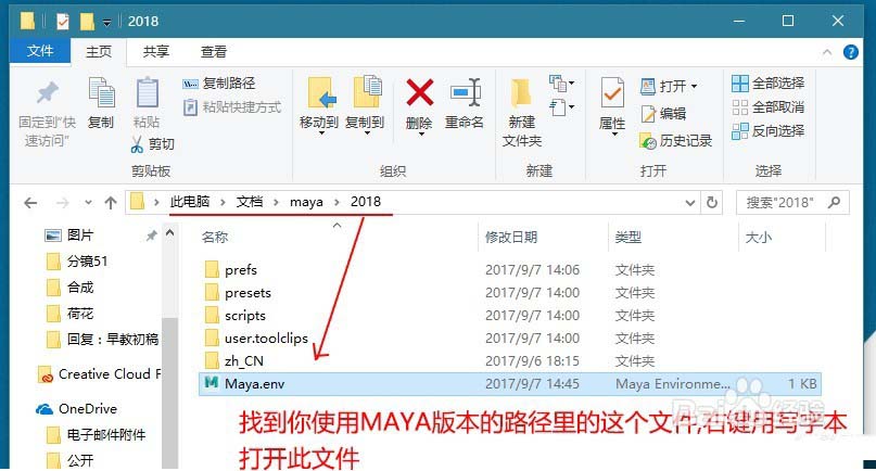 5、在電腦【文檔】-【maya】-【2018】(根據(jù)你的版本號),找到Maya.env這個文件,然后右鍵用【寫字板】打開。
