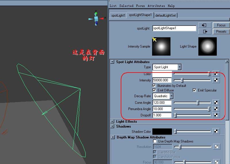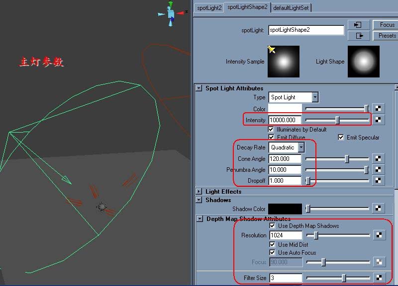 然后給這個物體添加如下圖的主燈參數(shù)。