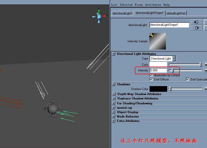 注意:這三個燈都只照模型不照地面。參數(shù)如下圖。
