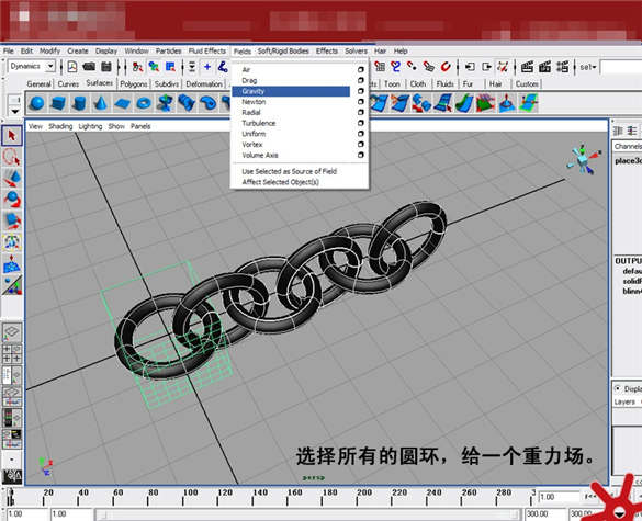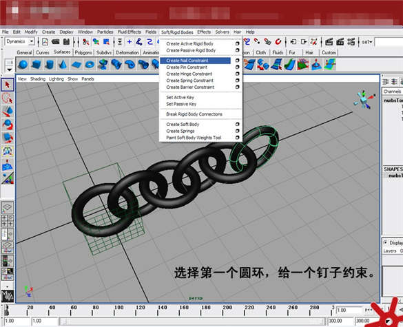 Maya怎么制作一個擺動的金屬鐵鏈效果?maya中想要制作一個有金屬圓環組成的鐵鏈,并且添加擺動的效果,該怎么制作呢?下面我們就來看看詳細的教程,需要的朋友可以參考下。