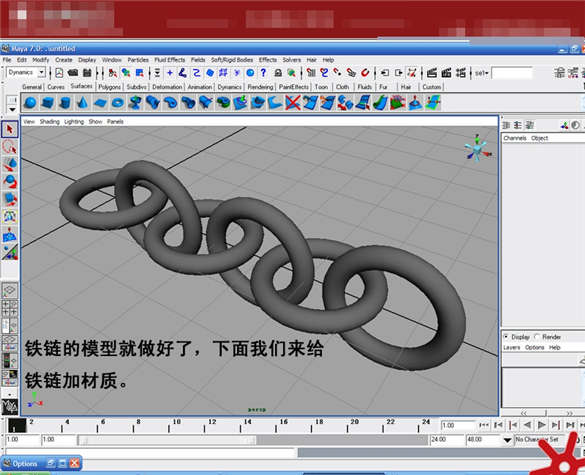 3、鐵鏈的模型就好做了,下面我們來給鐵鏈加個材質;