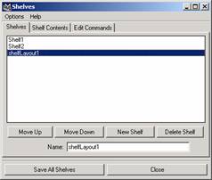 ● Shelves 選項卡:顯示已經存在的工具架名稱。