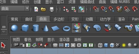 3、在Maya的右上角,將建模模式更改為“曲面”建模