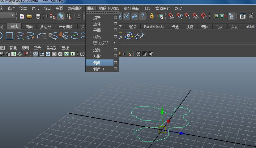 4、選擇畫好的曲線,執行“曲面>倒角”命令