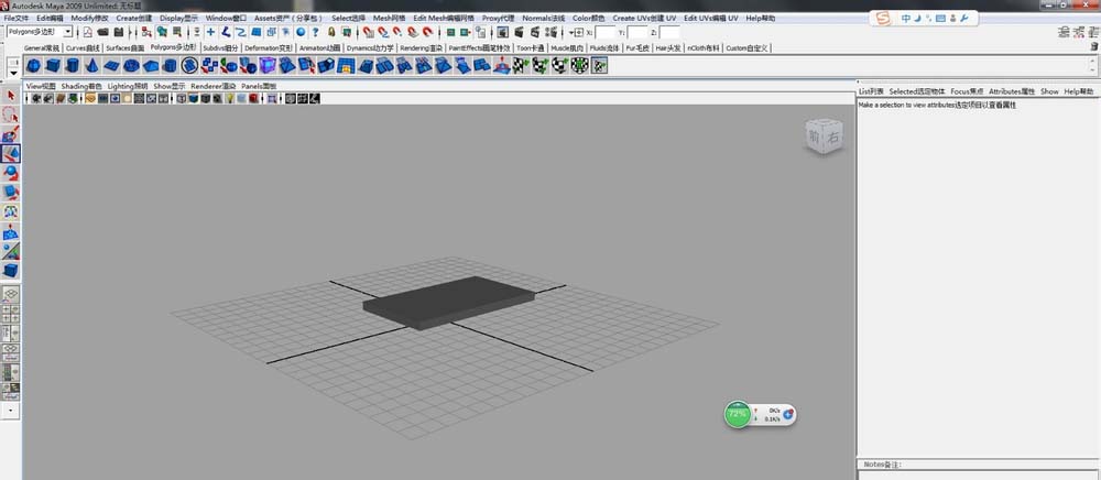 1、打開maya軟件,切換到多邊形模塊并新建一個盒子cube