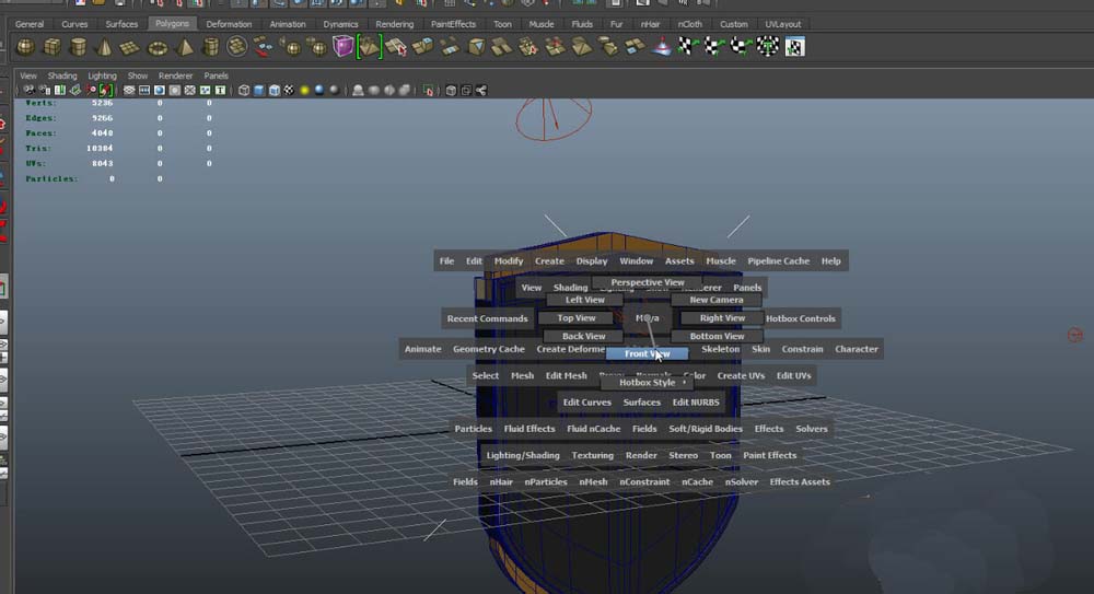5、我們來切換到你想要測量面的正視圖,按住 空格鍵 按住鼠標右鍵,maya界面會出現如圖界面