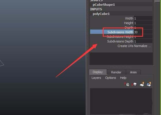 5、選擇常見(jiàn)的這個(gè)cube物體,設(shè)置subdivision width的值為30,如圖所示: