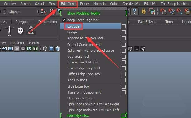 11、選擇extrude命令,將這些面擠出一段距離,如圖所示: