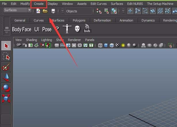 2、在該界面的菜單里找到create菜單,如圖所示: