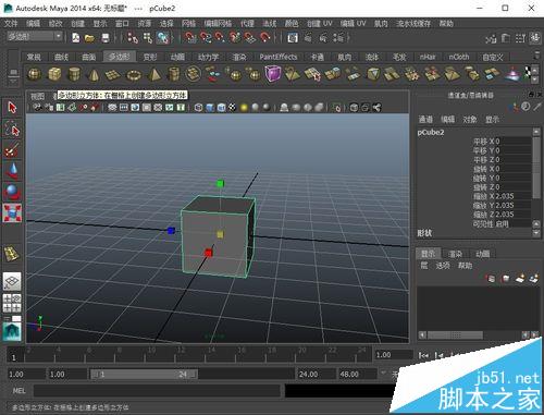 2、我們在透視圖的上方點擊多邊形,然后我們點擊這些模型當中的“多邊形立方體”,就可以發現在透視圖當中,已經建立好一個立方體模型了。