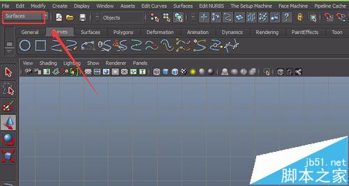 7、選擇編輯后的曲線,在功能模塊里切換到surfaces模式,如圖所示: