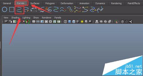 2、在上面的菜單欄里找到curves菜單,在curves下的工具里找到EP curve tool命令,如圖所示: