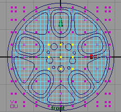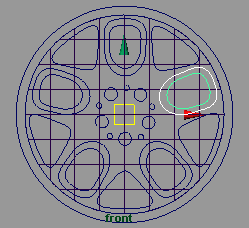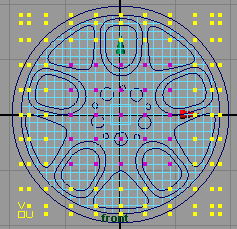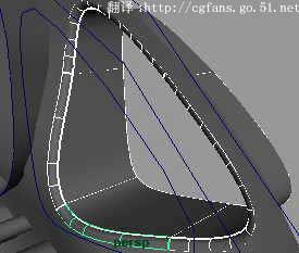 調(diào)整前面的 cv 點(diǎn)到如 (pic 21) 的效果,調(diào)整好后,選擇最外面的 isoparm 線,使用 surfacesplanar 命令閉合這個(gè)車(chē)輪蓋子 (pic 22).