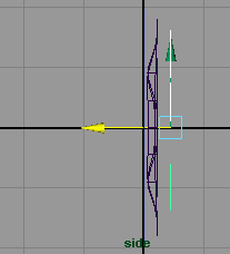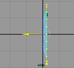 在 front 視圖里選擇 cv 點(diǎn) (pic 3) 將其在 -z 軸方向拉伸 (pic 4), 數(shù)值約為 -0.235. 你可以在 channel box 里看到這一數(shù)值。