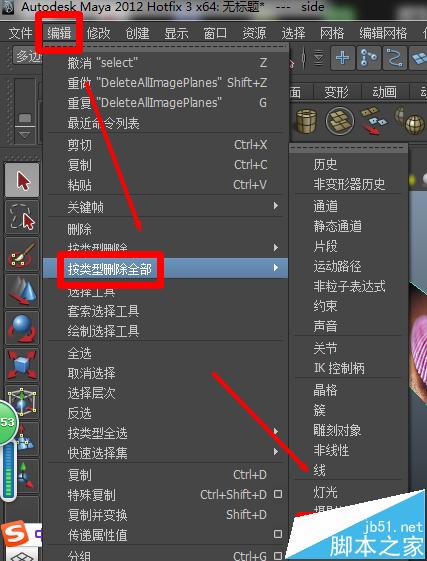6、點擊“編輯”——按類型刪除——圖像平面,可以刪除對應的圖像素材。