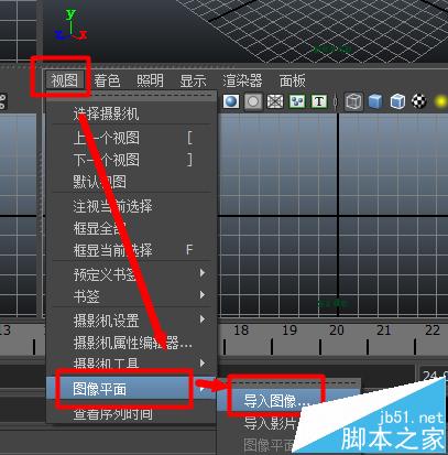 2、選擇一個視圖窗口,點擊上方的“視圖”菜單下的“圖像平面”-“導入圖像”功能。