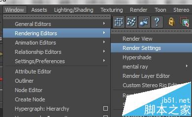 3、依次打開window--rendering editors-- render settings或者直接點擊渲染器設置的快捷鍵