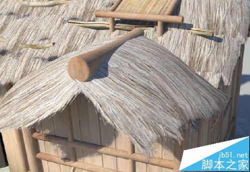 9、最后我們可以打上“天光”或者燈,使用“mental ray”或者其他渲染器,渲染出來的模型就會是圖上稻草屋頂的樣子了。