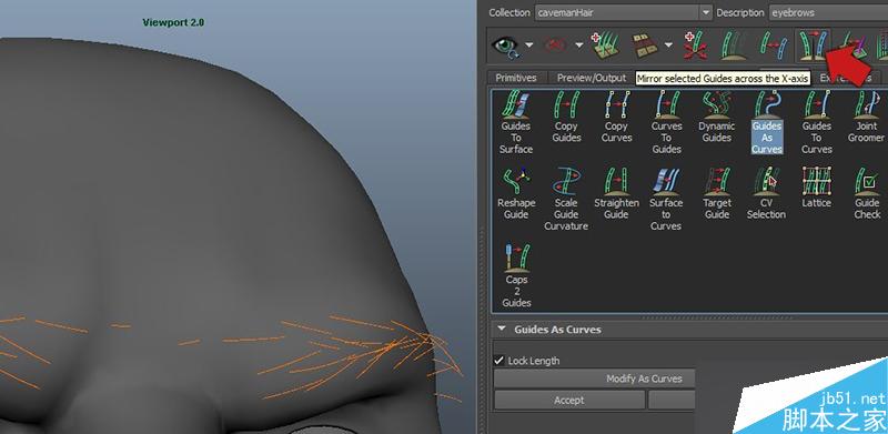 下面開始放置引導線,引導線可以通過旋轉和縮放進行調整,做好以后使用Guides As Curve工具將其彎曲