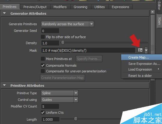 下面創建第二個Clump修改器,這個的Density值要比第一個高一點,因為這一個修改器要使用第一個的Ptex貼圖,xGen的修改器運行模式是堆棧式的,接下來我將向大家展示這些貼圖。