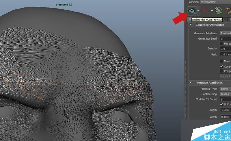 現在預覽看起來并不是太好,可以看到xGen并沒有為整個頭部創建毛發,而是僅僅在引導線附近生成了毛發