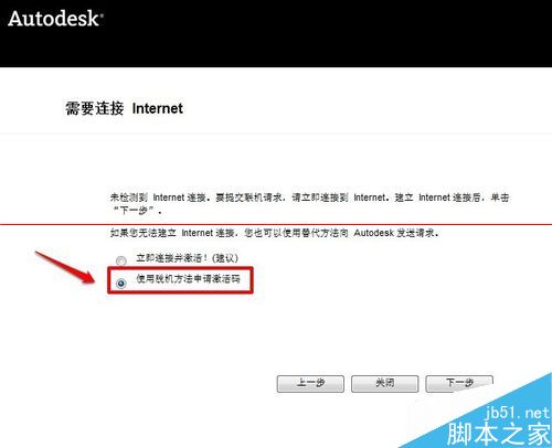 3、選擇使用脫機方法申請激活碼,點擊下一步。