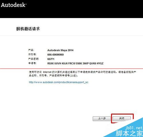 4、點擊“關閉”,關閉當前對話框;重新運行maya2014,點擊“激活”進入正式激活頁面。