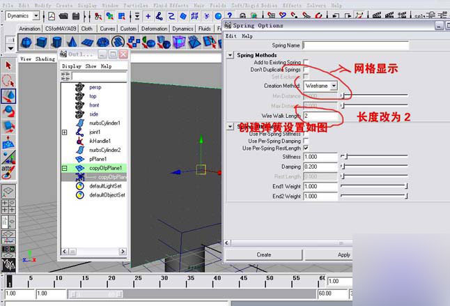 8、創(chuàng)建彈簧,設(shè)置如圖。