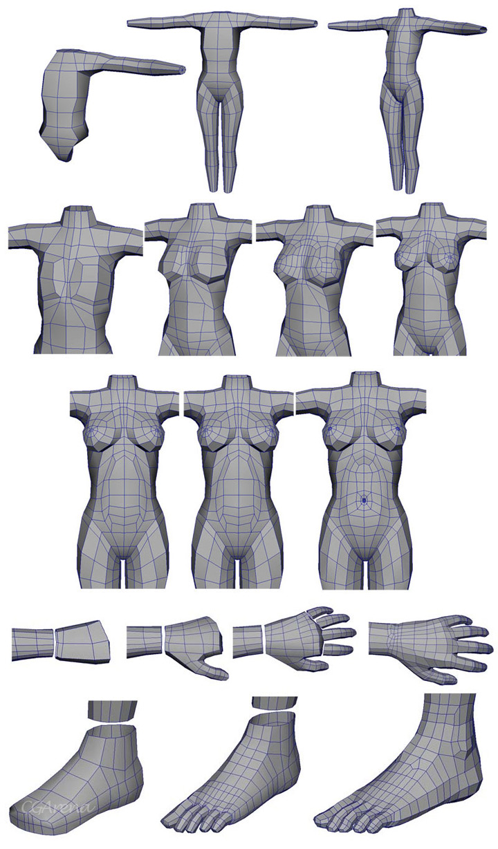 建模—建模的目的是建造低模在T型位置上,我很喜歡使用大塊建模技術。從簡單的形式到細節的精致是開始建模的必要。身體,手和腳,我分別做完,再把他們組合起來,做好最初的低模,在精細的雕琢細節補部分。