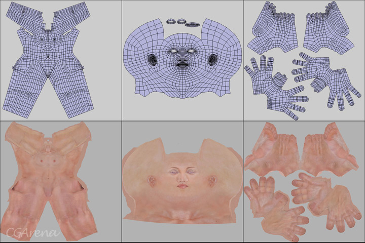 展UV,我用的是非常實用的軟件"headusuvlayout",當UV展好了以后,我將Blinn材質球賦予模型,在這之后我開始為模型繪制貼圖,根據渲染出來的圖片調整設置。
