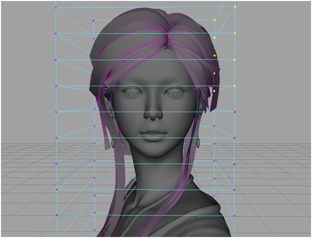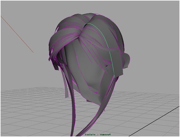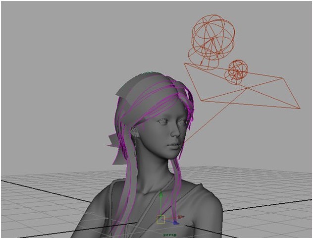 在這一步里,我做出了頭發(圖.08)。曾經有人問過我如何來做頭發。我主要用NURBS,主要運用在兩個拉伸曲面的表面。不要刪除歷史記錄——這樣通過直接控制曲線來修改就可以很簡單,如果你想做出有風的使效果,或是想將它作為一個整體來控制,那你可以增加一個精細過濾網來控制曲線。這是一種非常簡單的調整方法。