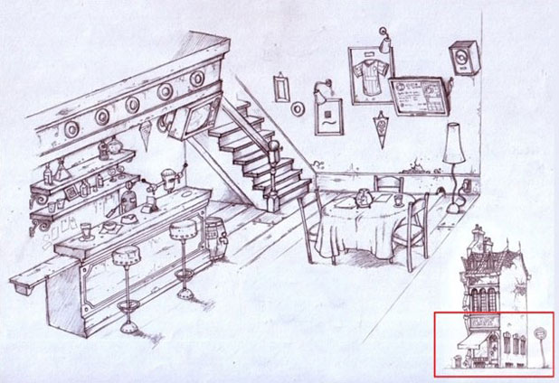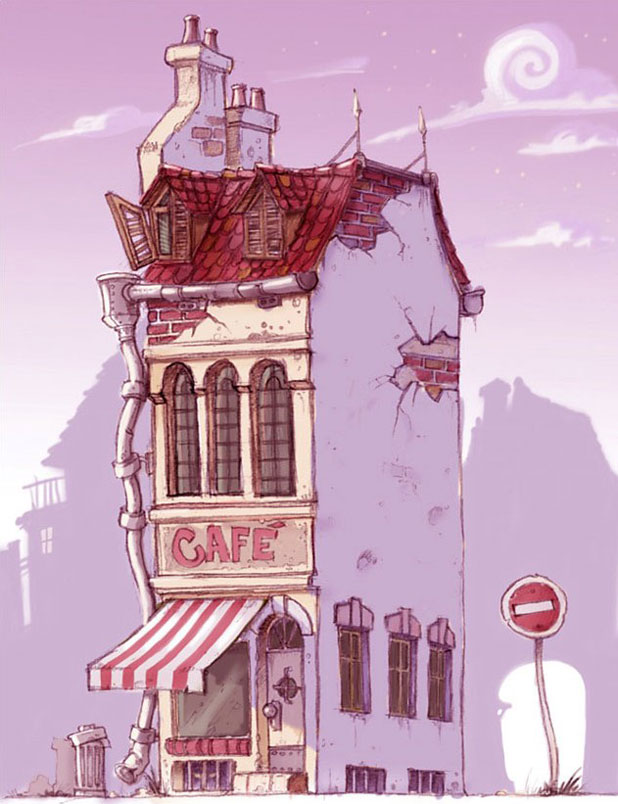 這是我前不久開始制作的項目。作為動畫電視節(jié)目的一個商業(yè)項目,我的任務(wù)是創(chuàng)建一個小村莊的概念圖,主要是村莊的中心廣場。主要場景之一是一間咖啡屋,每當(dāng)開始一次新的旅行之前主角們都會在這里聚集。