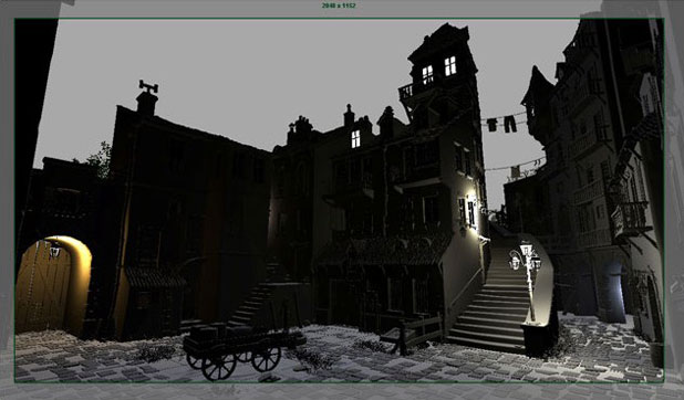 為單獨的最終鏡頭找到合適的比例比較困難,因為整個場景都是為了動畫系列而制作的,甚至所有的元素都打算顯示出來。導(dǎo)演需要根據(jù)自己的要求來自由地移動相機,從任何角度都能拍攝到想要的鏡頭。最后我選擇了最有趣的鏡頭,從這點開始可以進(jìn)一步制作圖片。