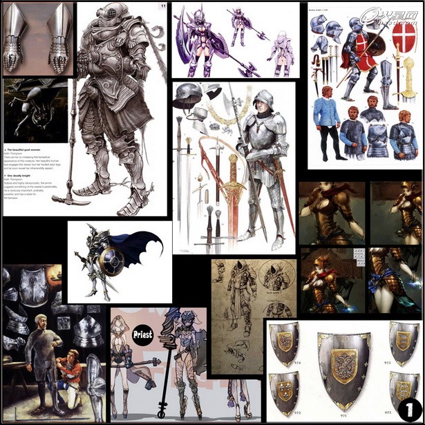 這個作品是我利用工作之余的時間進行制作的,實際制作時間加起來大概是半個月。我個人比較喜歡偏寫實類的東西,想制作一個非生物模型,它大概是由金屬、布料皮革等材料構成,于是我就開始翻看起自己平時搜集的各類圖片參考素材,綜合整理參考后,便定下了制作這個騎士角色。(如圖01)