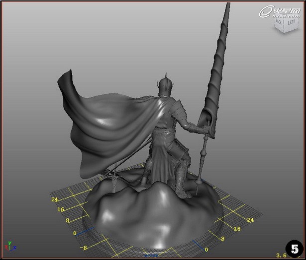 披風的制作我是利用Maya的nCloth系統進行解算得到的基礎模型,然后在ZBrush中進行細化得到最終的效果(如圖5)。