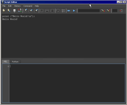單擊 Maya 主窗口右下方的"腳本編輯器"(Script Editor)按鈕,或選擇"窗口 > 常規編輯器 > 腳本編輯器(Window > General Editors > Script Editor)"以打開腳本編輯器。